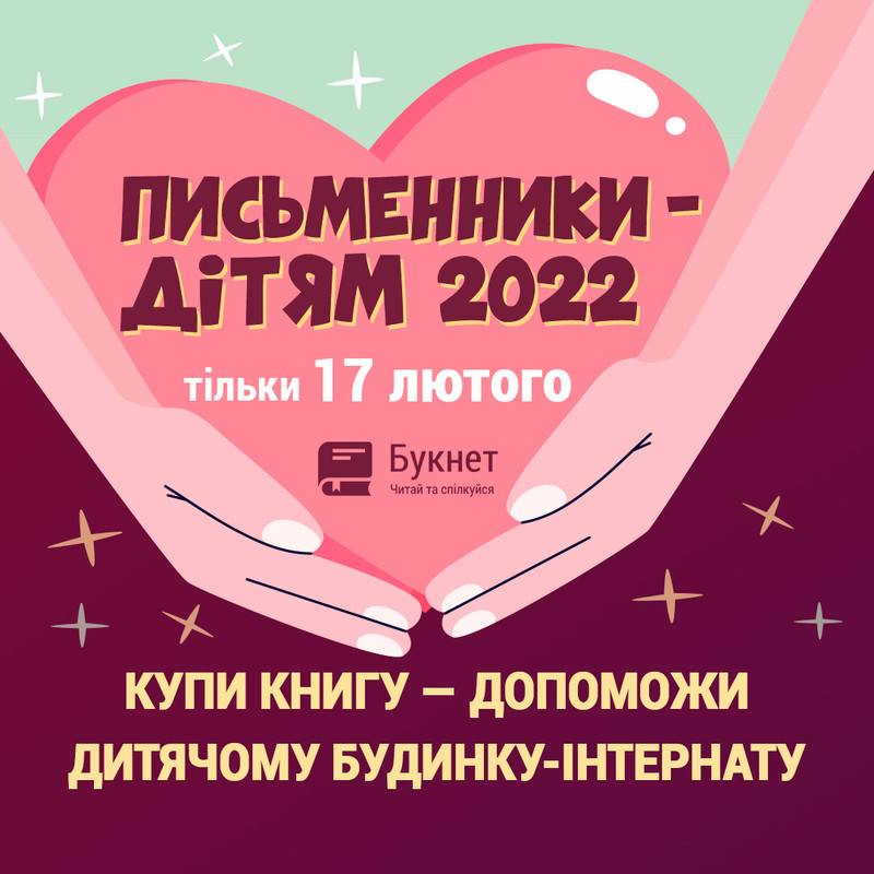 Шановні читачі, Букнет спільно з авторами проводить благодійну акцію "Письменники - дітям 2022". Тільки сьогодні, купуючи книги, що беруть участь в акції, ви допомагаєте дитячому будинку-інтернату, де проживають, навчаються та лікуються діти із найскладнішими формами інвалідності.