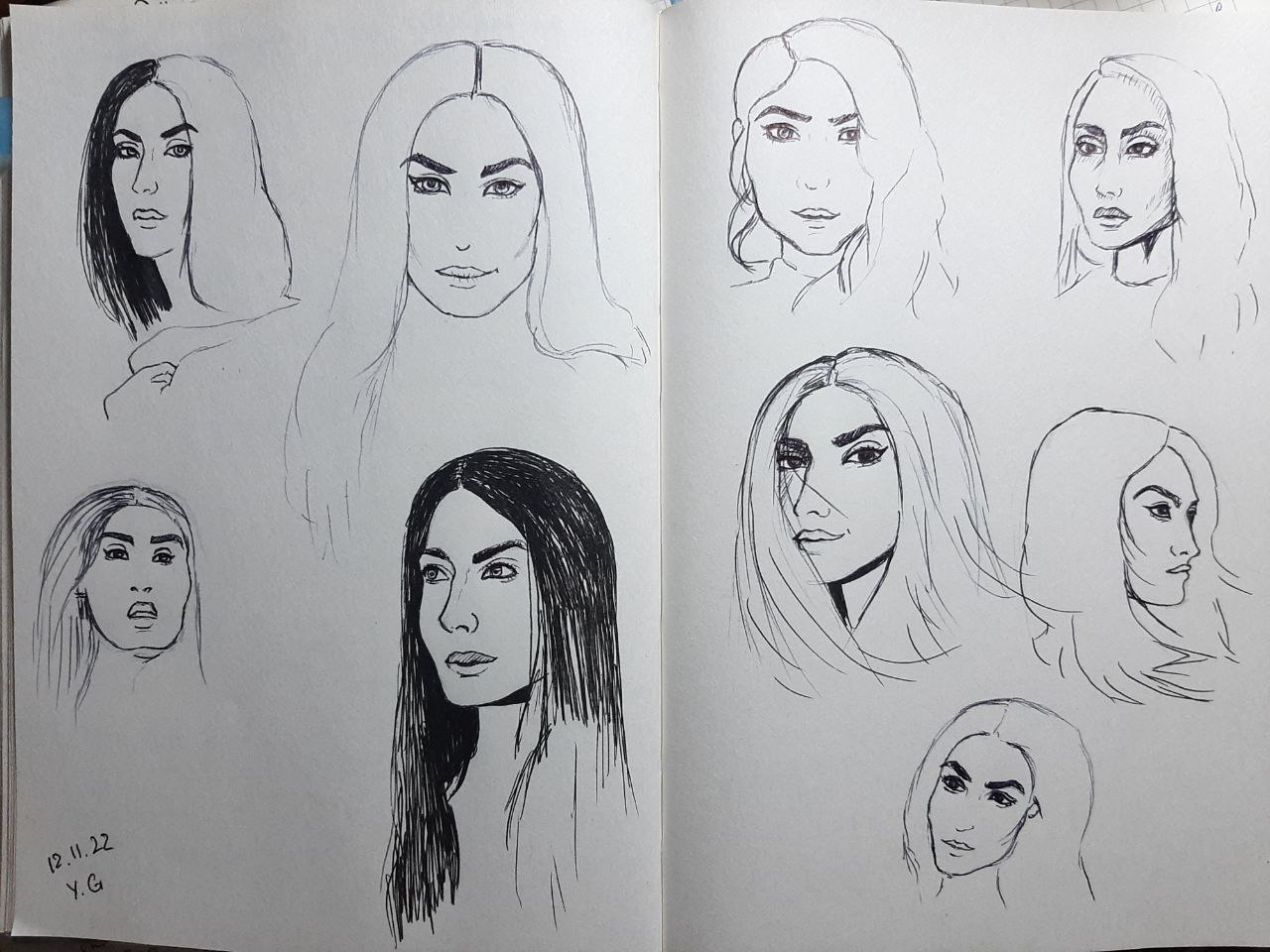 П.С. 2. До поста додаю проміжний етап створення портрету головної героїні. Фактично це просто швидкі скетчі без пророботки та стилізації як такої, бо зроблені нашвидкуруч під час нещодавніх подій (тобто без концентрації та вкладання в це відповідної уваги та зусиль). І так, результат мені не дуже подобається.