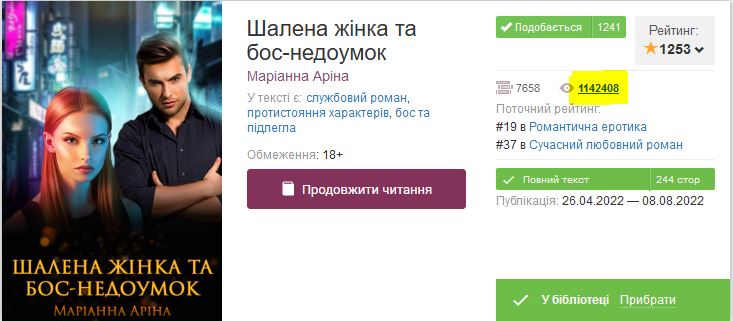 Випадкова глянула статистику прочитань на книзі