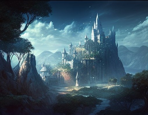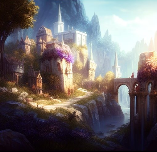Трохи погралась з нейромережею, намагаючись відтворити хоч приблизну картинку того світу, що я описую. Слова - словами, але хочеться й очима побачити вигадане Стрибор'я. Вийшло якось так: