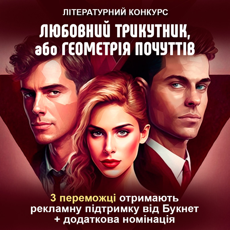 Сьогодні на Букнет стартує новий супершвидкий конкурс коротких позитивних оповідань «Любовний трикутник, або Геометрія почуттів». Він триватиме лише 7 днів і вже 08.05.2023 дізнаємось про переможців!