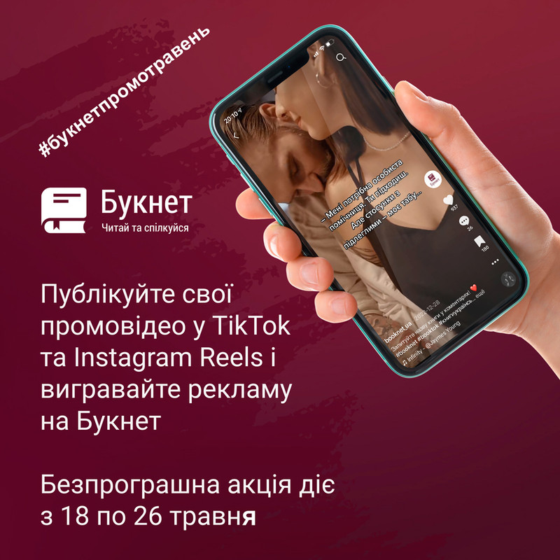 Публікуйте промовідео про власні твори у TikTok та Instagram Reels та вигравайте рекламу на Букнет!