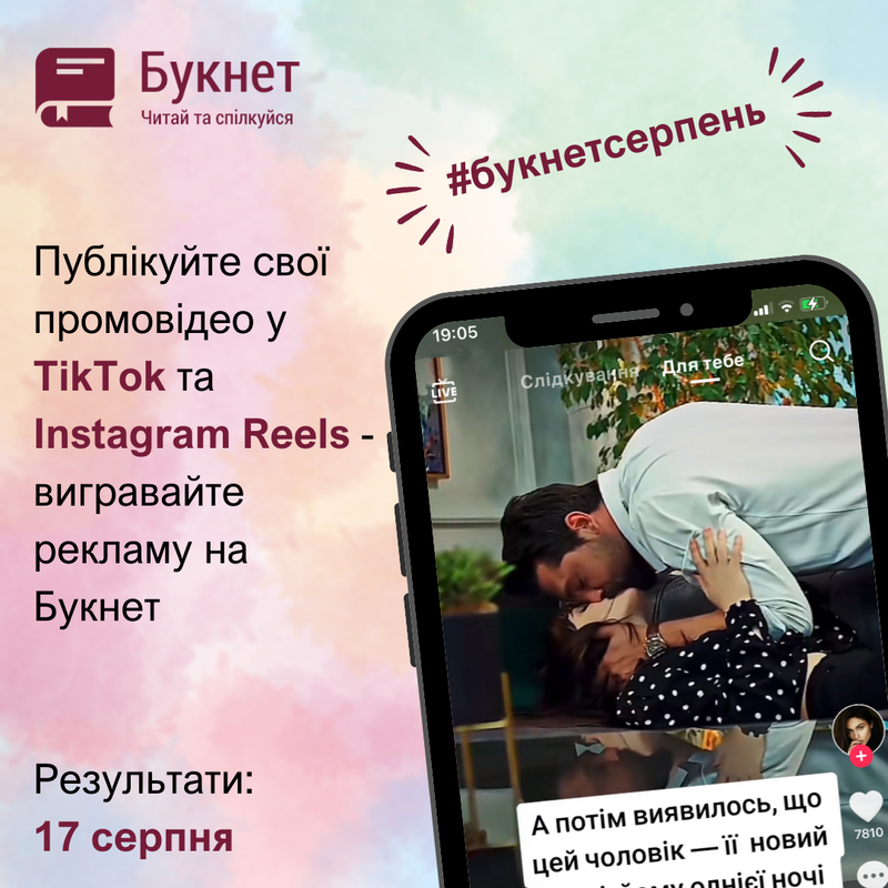 Публікуйте промовідео про власні твори у TikTok та Instagram Reels та вигравайте рекламу на Букнет!
