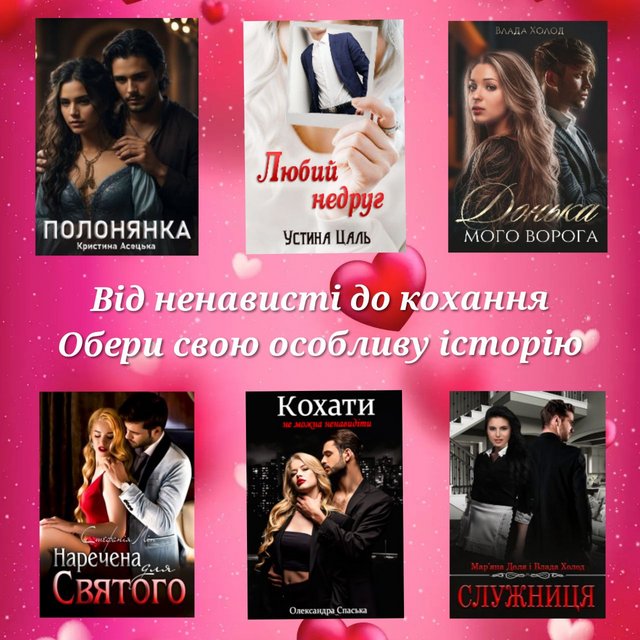 Кажуть: «Від ненависті до кохання - один крок». Представляю Вам добірку книг, де в проміжку між цими емоційними почуттями розкривається захоплюючий сюжет, який спонукає свого читача відчути додатковий спектр емоцій та особливий смак: десь - з гірчинкою, десь - з солонинкою, а десь - настільки солодких та пристрасних, що не можливо відірватися від читання.