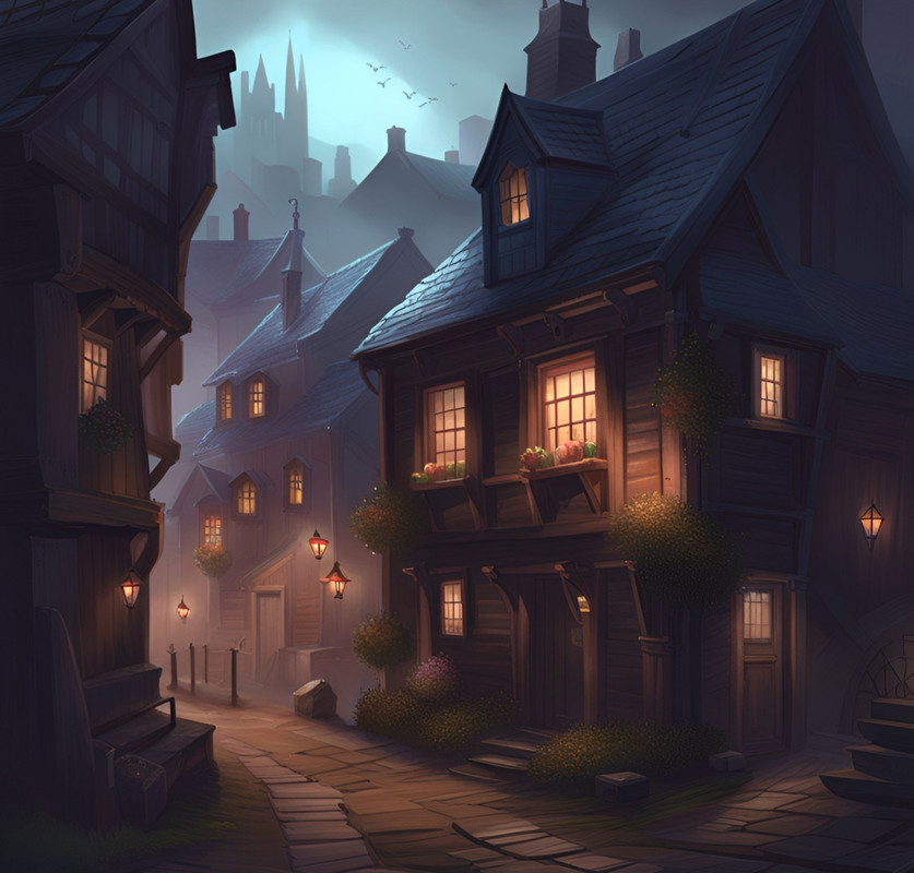 Десь так виглядає в моїй уяві це містечко. Як вам такі атмосферні англійські домівки та вузькі, звивисті вулички? Гадаю, саме таку картину побачили мої персонажі зі сторінок книги "Таємниці Коллдблуда", коли вперше потрапили сюди.