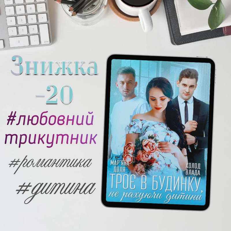 Знижка діє лише до кінця сьогоднішнього дня! Нагадую, що діє програма лояльності - якщо ви вперше купуєте будь-яку мою книгу ( наприклад, нещодавно закінчений роман, теж із "любовним багатокутником " в основі сюжету, "Зрада. Одружитися на зло") за повною ціною, отримуєте знижку 15 % на всі інші книги!