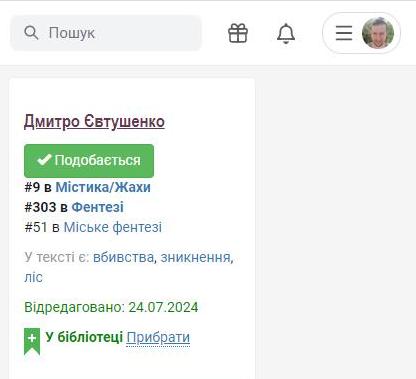 Всім доброго часу доби! Ще вчора я радів, що моя книга «Ліс втрачених душ» посіла 16 місце у жанрах Містика та Жахи. А вже сьогодні книга зайняла 9 місце в цих жанрах, і 51 позиція в Міському фентезі)))