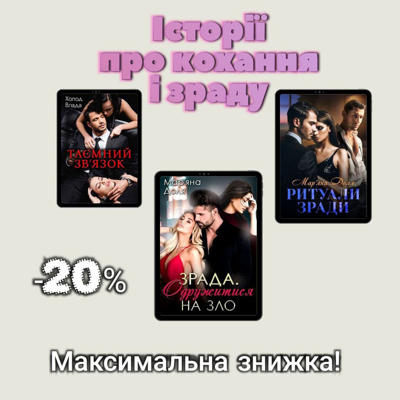 Також сьогодні ви можете придбати зі знижкою недавно завершений роман "Ритуали зради"! Книгу можна придбати зі знижкою -20 відсотків!