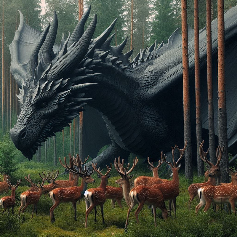 Злагоджено підхоплюємо по жирненькому звіру і приземляємося на найближчій галявині. З насолодою рву пазурами видобуток і вгризаюсь у свіжатину.