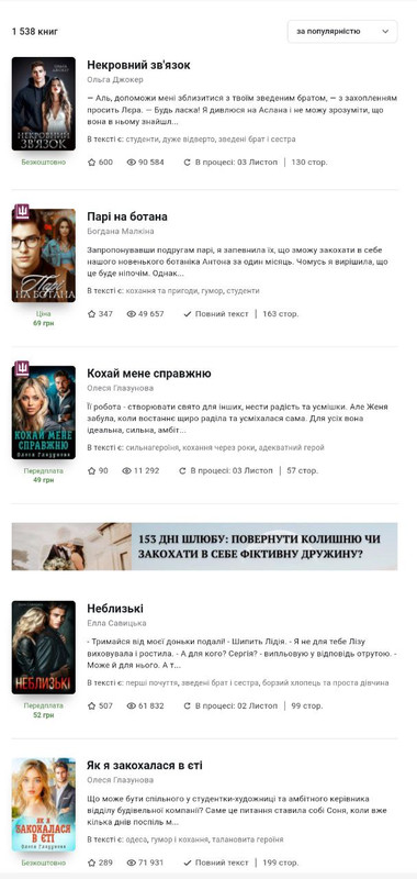 На роман "КОХАЙ МЕНЕ СПРАВЖНЮ" було відкрито передплату та читачі зробили мені сюрприз. Книга посіла 3 позицію з 1538 книг у жанрі Молодіжна проза, а перша БЕЗКОШТОВНА частина "ЯК Я ЗАКОХАЛАСЯ В ЄТІ" займає 5 місце!