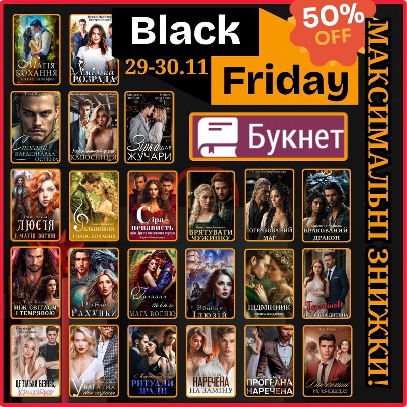 З нагоди Чорної п'ятниці на Букнеті дарую знижку -50 % на популярні книги: