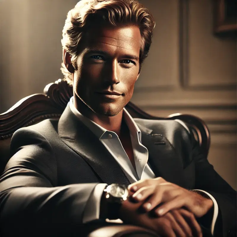 "Його шляхетне обличчя, прикрашене кількома зморшками біля очей і губ, говорило про досвід і виваженість. Ці зморшки не старили його, а лише додавали харизми, мовби підкреслюючи мудрість, накопичену за роки."