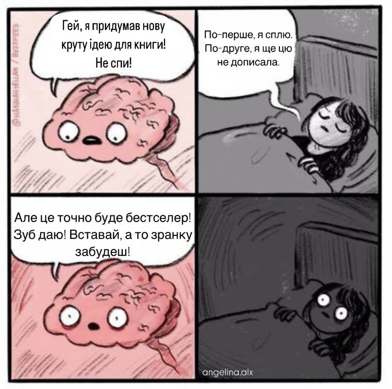 Перший це дуууже влучно! Тільки спати як у голові повно ідей)))
