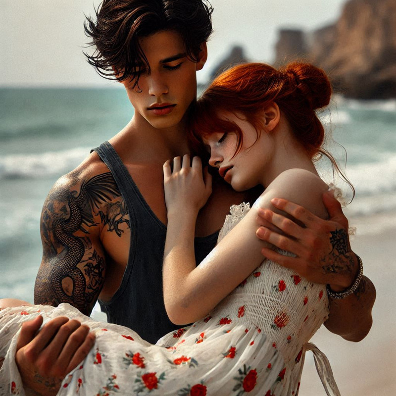 Дівчина була не стільки проти, скільки її турбувала така близкість до напівоголеного хлопця. Вона відчувала його м’ятне дихання, як рухаються м’язи, а з його волосся все ще стікала вода. Її щоки спалахнули, коли очі зустрілись з бурштиновим поглядом, тому вона відразу ж відвернулась.