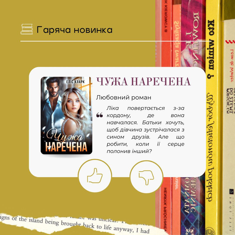 Для нових покупців діє програма лояльності - купуючи одну книгу Еліс Кларк за повною ціною, ви отримуєте знижку -25 % на ВСІ інші книги!
