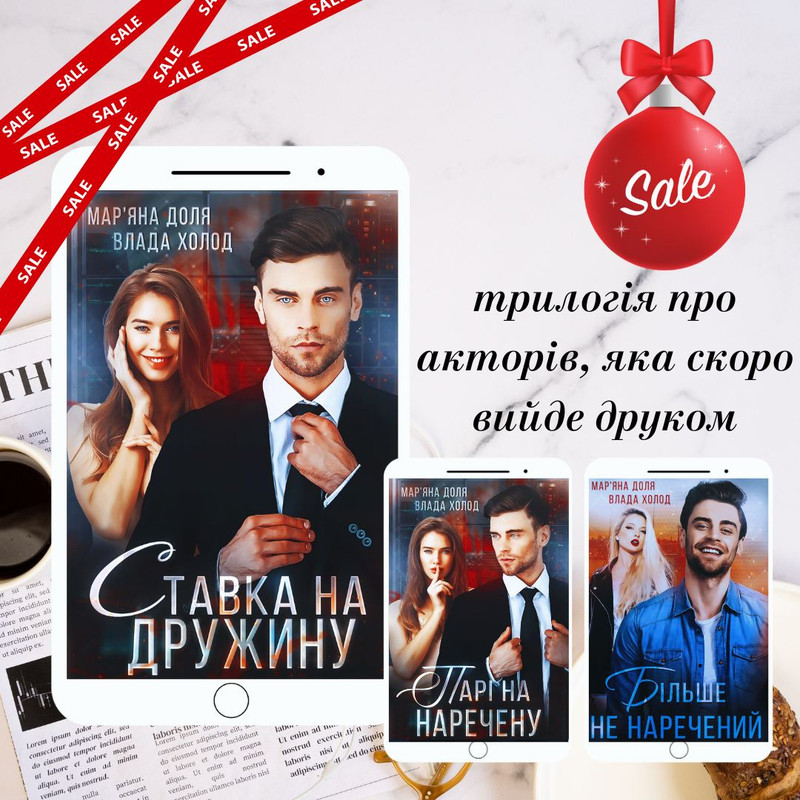 Також сьогодні можна придбати зі знижкою книгу Мар'яни Долі та Влади Холод "Ставка на дружину"! Дві інші книги трилогії - "Більше не наречений" і "Парі на наречену" - безкоштовні!