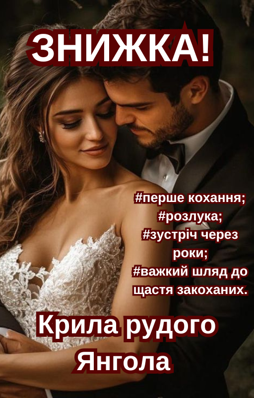 Запрошую до знижки на роман, "Крила рудого Янгола", — це історія кохання Андрія та Анастасії-Валерії. На героїв чекає немало випробувань, але своє кохання вони пронесуть через роки.