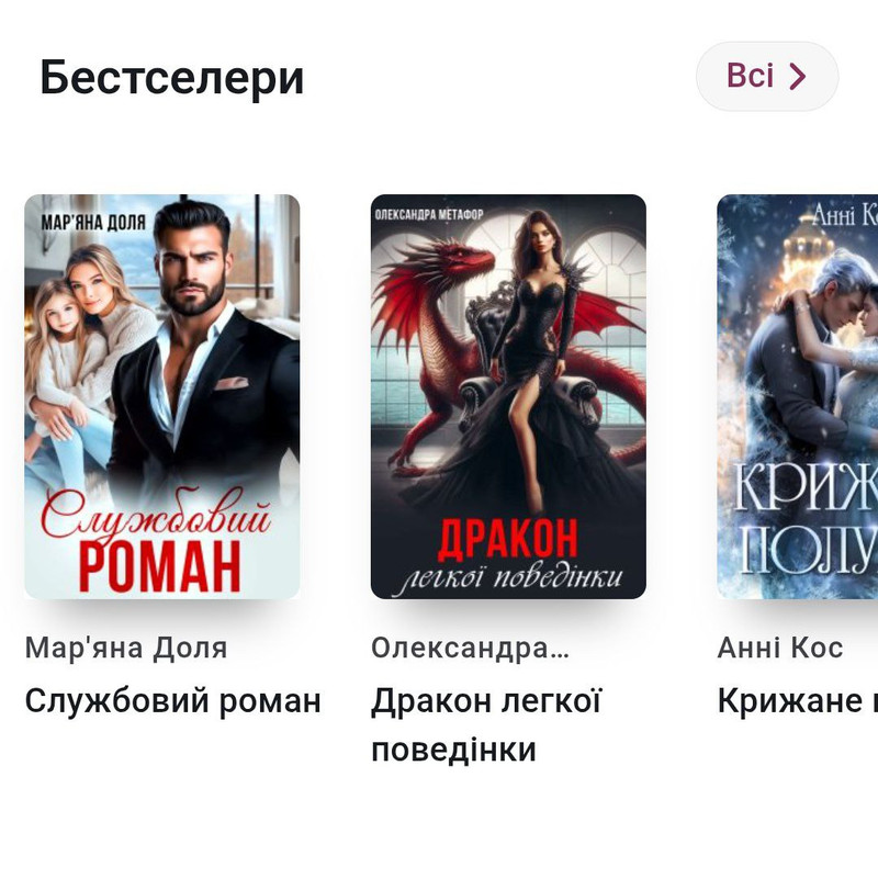 Зайшла сьогодні на сайт і з хвилюванням і радістю побачила, що "Службовий роман" став першим у списку бестселерів, а також першим у рейтингу в своїх жанрах - жіночий роман та сучасний любовний роман, і другим у рейтингу серед усіх книг Букнету!