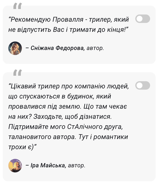 Окрема подяка Ірі Майській, Сніжані Федоровій, Мілені Фокс та Юлію Черепу за РЕКОМЕНДАЦІЇ. Ви найкращі!