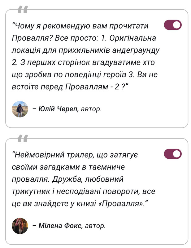 От якби Букнет зробив би у додатку збільшені обкладинки, то взагалі чудово було б. А то з телефона майже нічого не видно (безпосередньо самі обкладинки в книзі). З комп'ютера, звісно, можна подивитися, але б хотілося би, щоб і у книгах в додатку воно адекватно за розміром відображалося.