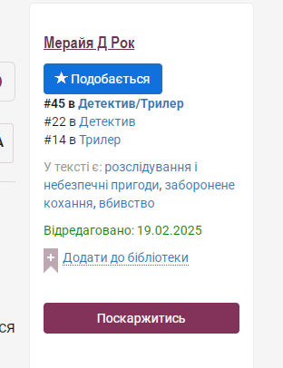 Хвилинка статистики! мій "Випадковий свідок" має ось такі результати за жанрами.