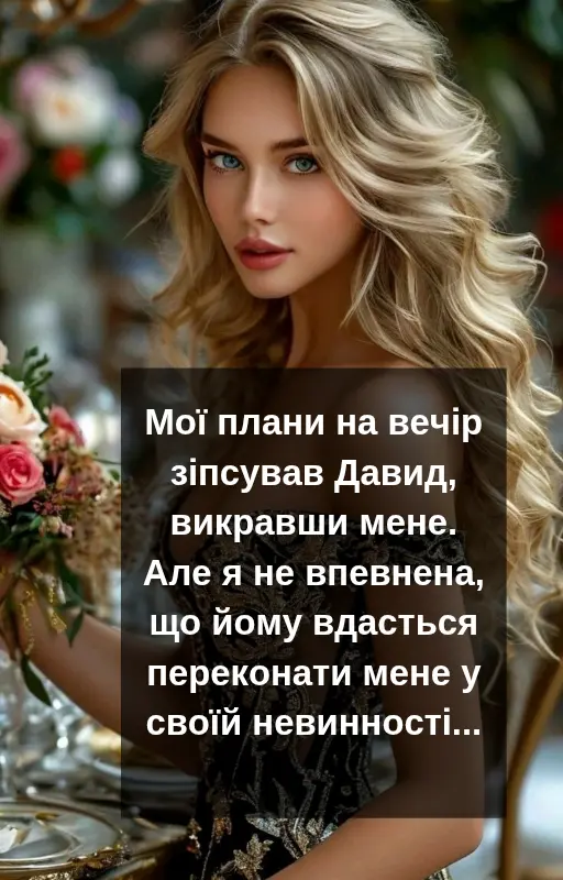 Отже, — це правда! А я так сподівалася почути, що завгодно, тільки не це. Давид почав стосунки зі мною, перебуваючи зарученим з іншою жінкою. Його не зупинило те, що плануючи майбутню сім’ю, він пішов наліво. Висновок — вірити йому не можна. Стримую емоції та ридання. Давид же справжній покидьок. Набираю повні легені повітря й кидаю.