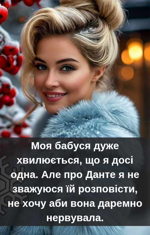 — Діанко! — тихо кличе мене ще зовсім молода вогняна красуня. — То правда, що ти досі одна?