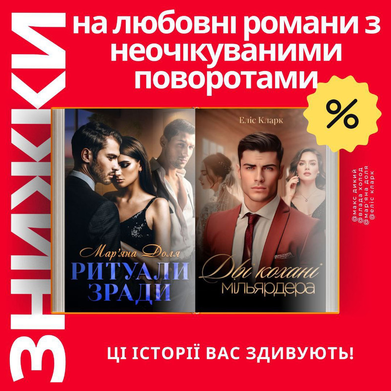 Також запрошую почитати зі знижкою роман Еліс Кларк "Дві кохані мільярдера"