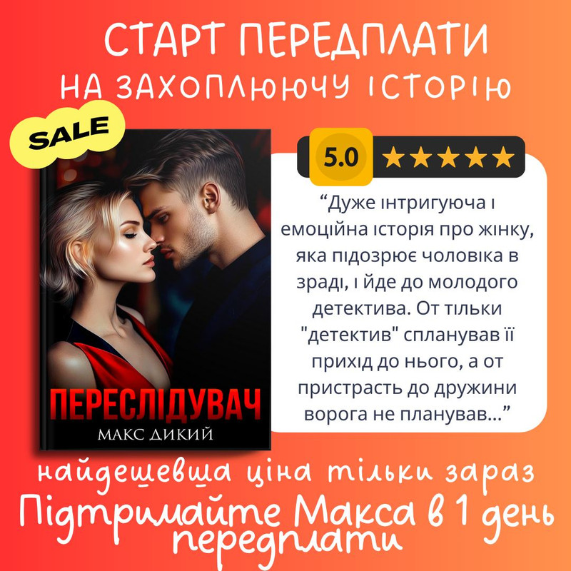 Друзі, запрошую вас до неймовірно цікавого романтичного детективу від Макса Дикого! Сьогодні автор відкрив на нього передплату! Книгу лише кілька днів можна придбати усього за 49 грн. А ще - отримати подарунки, які чекатимуть на вас в новому розділі!