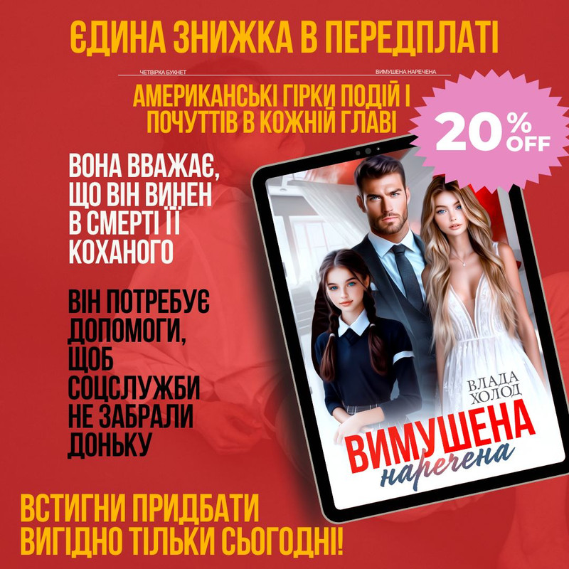 Купуйте "Вимушену наречену" прямо зараз, бо вже завтра ціна буде вищою, а після завершення вона ще більше зросте!