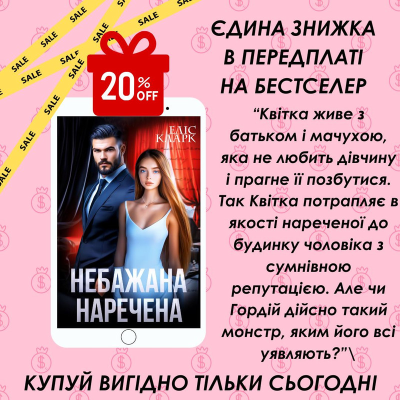 Придбайте книгу прямо зараз за мінімальною ціною і підтримайте авторку! Вже опівночі ціна на "Небажану наречену" зросте! А зовсім скоро, після завершення, книга стане ще дорожчою!