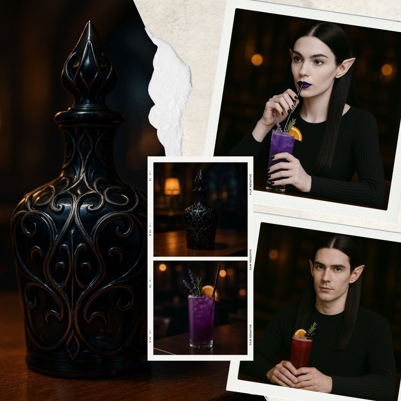 Ось таких мені ельфів, коктейлі і флакончик із зіллячком протверезіння начаклував ШІ. :)