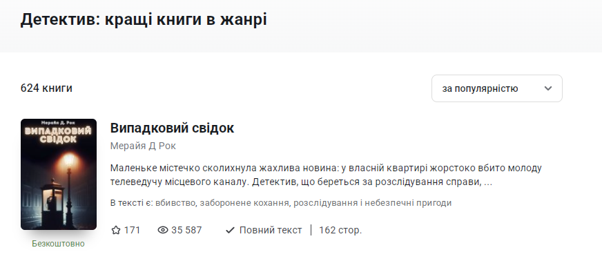 Саме завдяки вам, вашим прочитанням, мій дебютний роман тримається на першому місці в жанрі "Детектив". Дякую вам усім, мої любі читачі", безмежно! Ви даєте мені сили і наснаги творити далі!