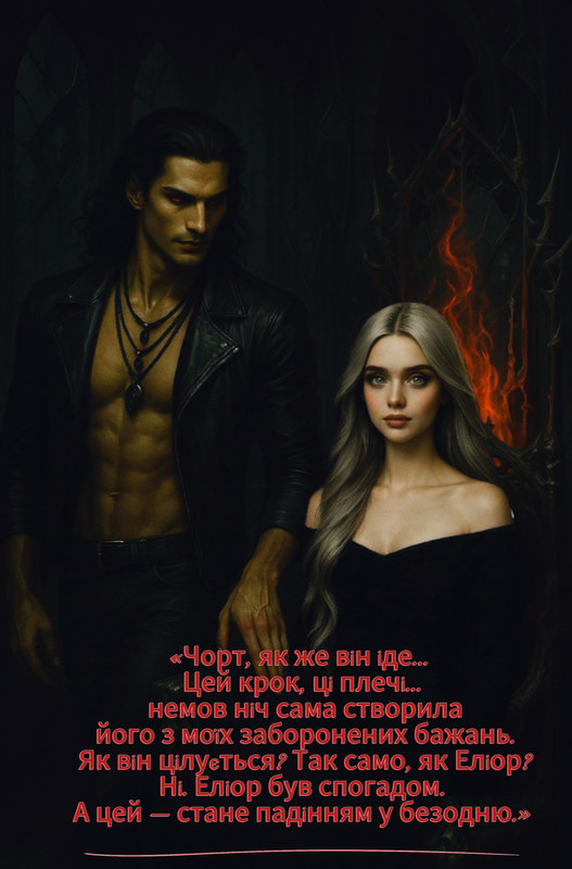 — Не бреши мені, — його голос проник у її свідомість, мов пульс. — Я бачу тебе. Твої страхи. Фантазії. І те, як ти жадаєш моїх губ.»