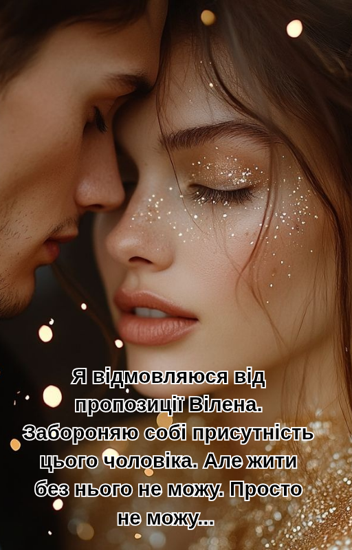 — Аїдо, припини! — суворо наказує Вілен. — Давай поки залишимо цю тему без обговорень. Я згодом все тобі поясню. А зараз давай просто насолоджуватися моментами разом. — він важко зітхає та делікатно притягує мене до себе. — Я розумію, що те, що пропоную, — це ні в які ворота, але це тимчасово... Доки я не вирішу все з Маріанною.