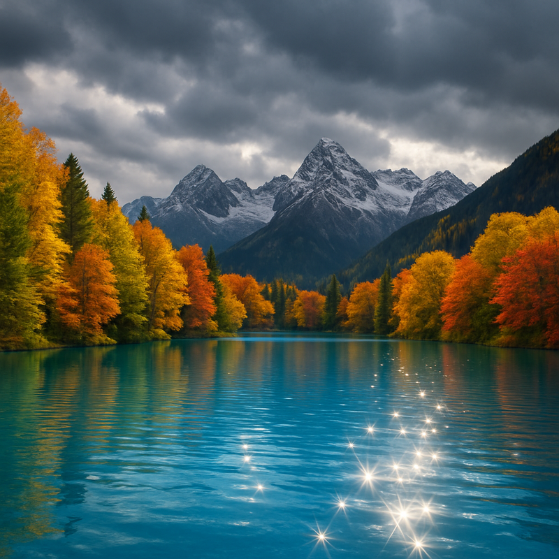 Озеро було наче відображення блакитного неба, таке яскраве і неймовірне, а ще на ньому грали промені сонця, якого насправді не було, бо небо затягнуте сірими, важкими хмарами. Навкруги були осінні дерева колір яких переходив від зеленого до жовтого і червоного, а ще були гори з гострими засніженими піками. В якийсь момент, коли я захекано підбігла до берега і видихнула, то з мого рота вийшла пара тепла. Цей сюрреалістичний пейзаж майже зламав мені мозок більше, ніж чудовисько з голосом Сашка.