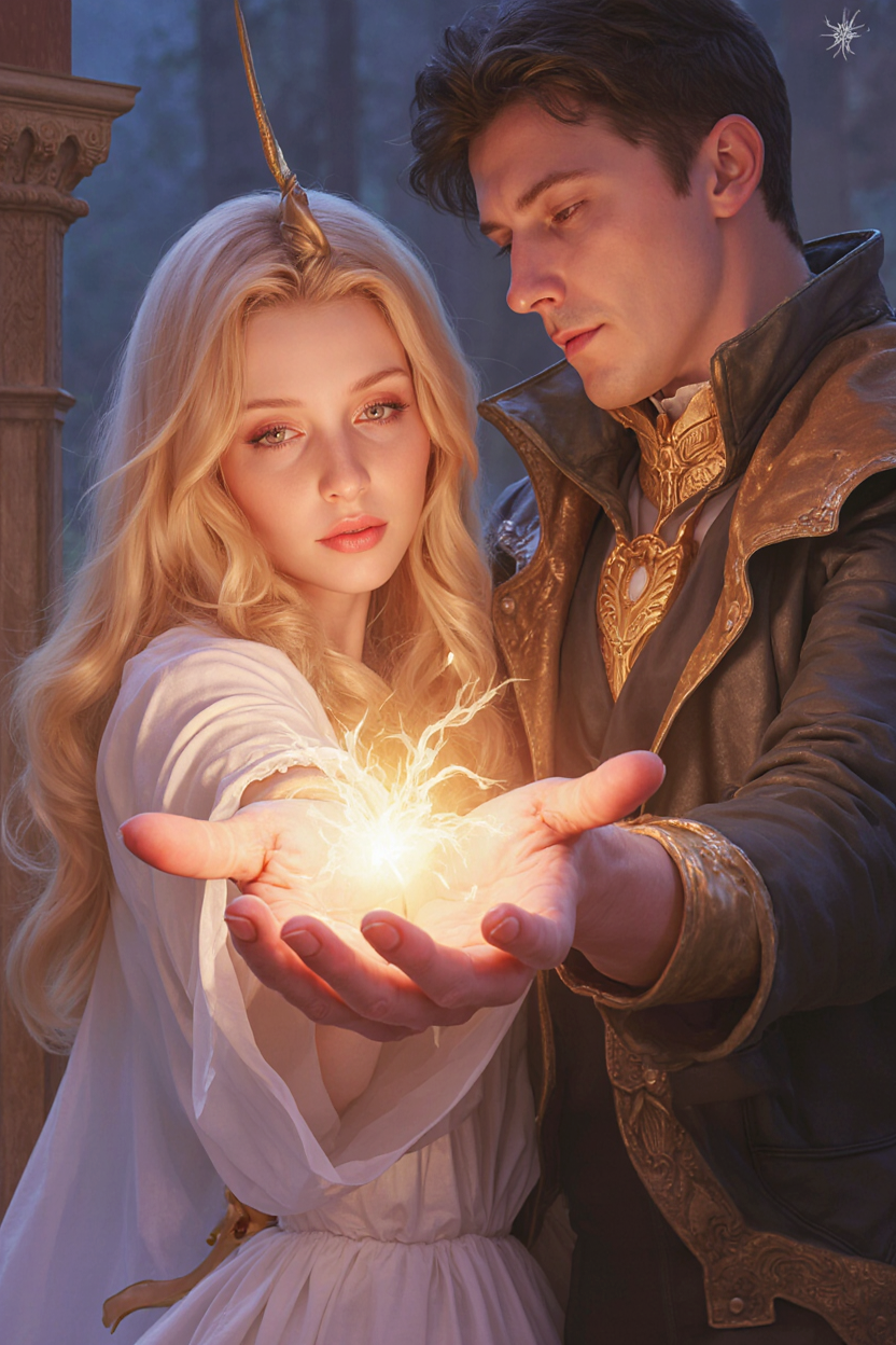 Сьогодні в мене були час, та натхнення і я знову звернулася до ШІ (насправді до різних ШІ) на предмет ілюстрації до шматочка тексту з цієї книги Третя дочка короля. Багато я не просила, бо знаю я їх, всього лише білявку, котру хапає за руку чоловік, а їй те не дуже подобається.