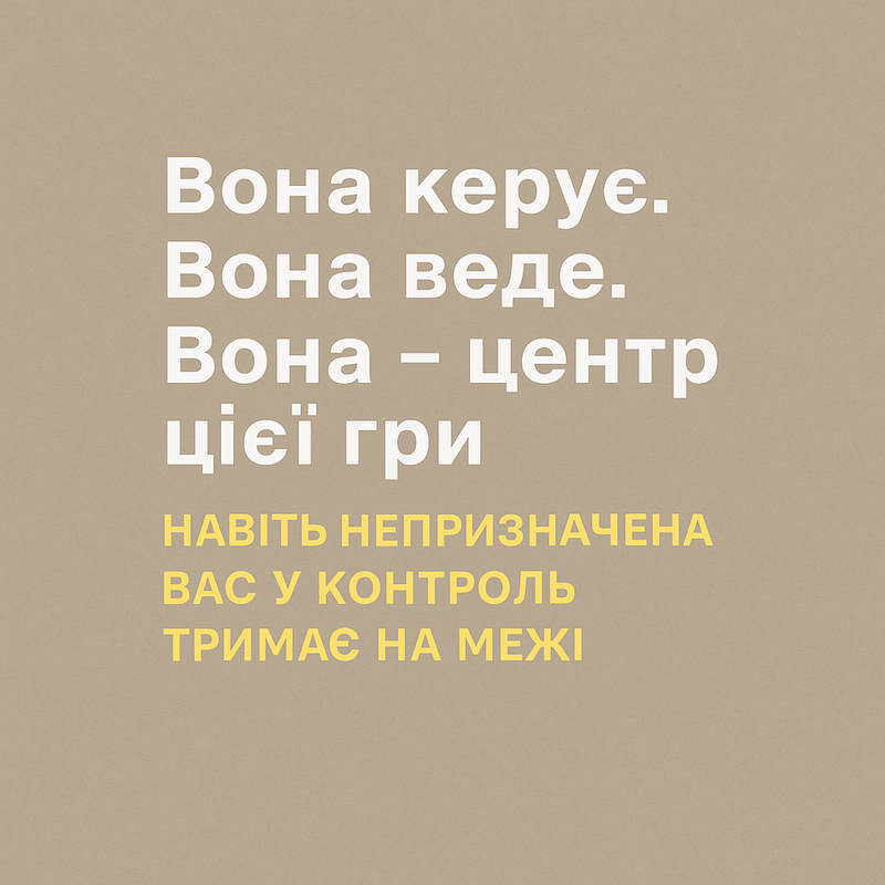 Навпаки — вона керує. Вона веде. Вона — центр цієї гри.