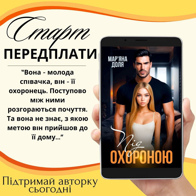 Запрошую до нової романтичної історії "ПІД ОХОРОНОЮ"! Сьогодні я відкрила на неї передплату, і зараз ви маєте можливість придбати улюблену історію за мінімальною ціною. Незабаром вартість книги стане більшою, тож не відкладайте покупку)