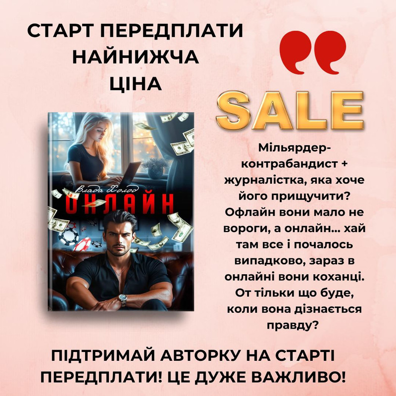 Хочу запросити вас до цікавої новинки від Влади Холод - роману "Онлайн"! Сьогодні авторка відкрила на неї передплату, але ви можете придбати книгу за мінімальною ціною!