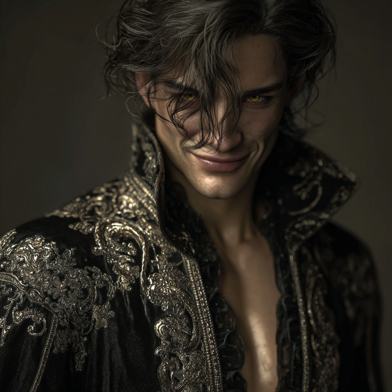 Високий. Небезпечно спокійний. Волосся темне, скуйовджене, обличчя з різкими вилицями та вишкіром, від якого у мене похололо під шкірою. Його усмішка не несла тепла — тільки хиже задоволення. Вона належала тому, хто вже вирішив, що ти — здобич.