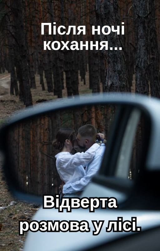 Від’їхавши на солідну відстань від траси, Даяна зупиняє авто у лісовій гущі. Пильно зиркаю на неї й питаю: