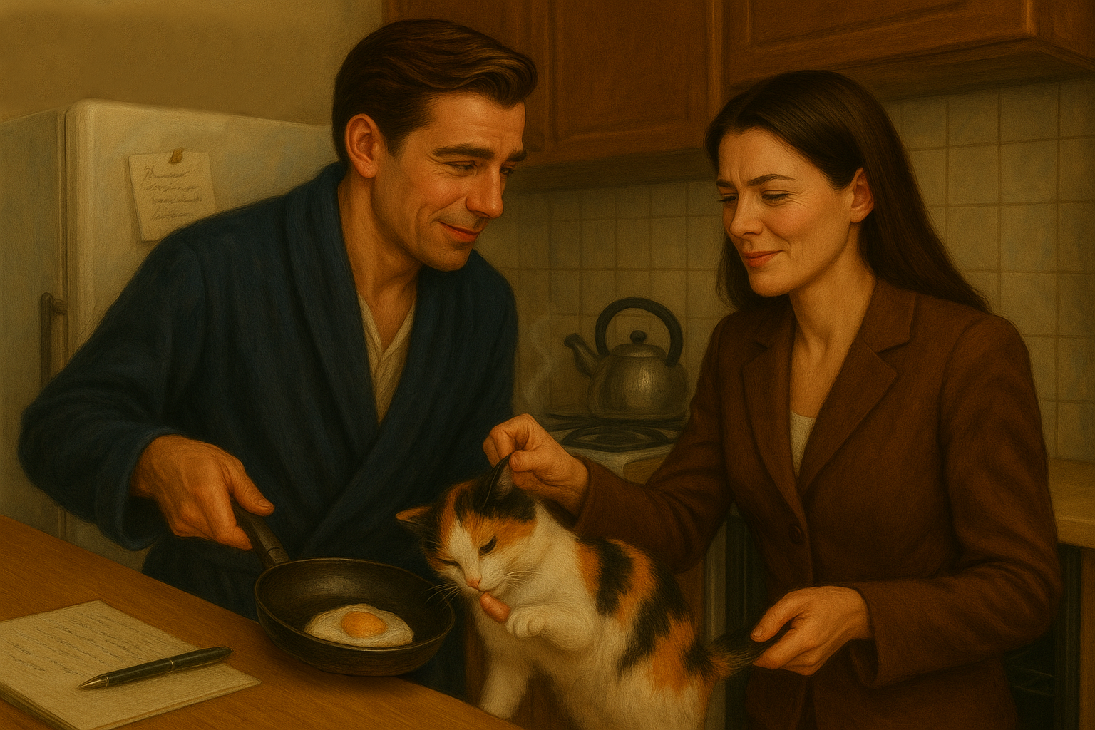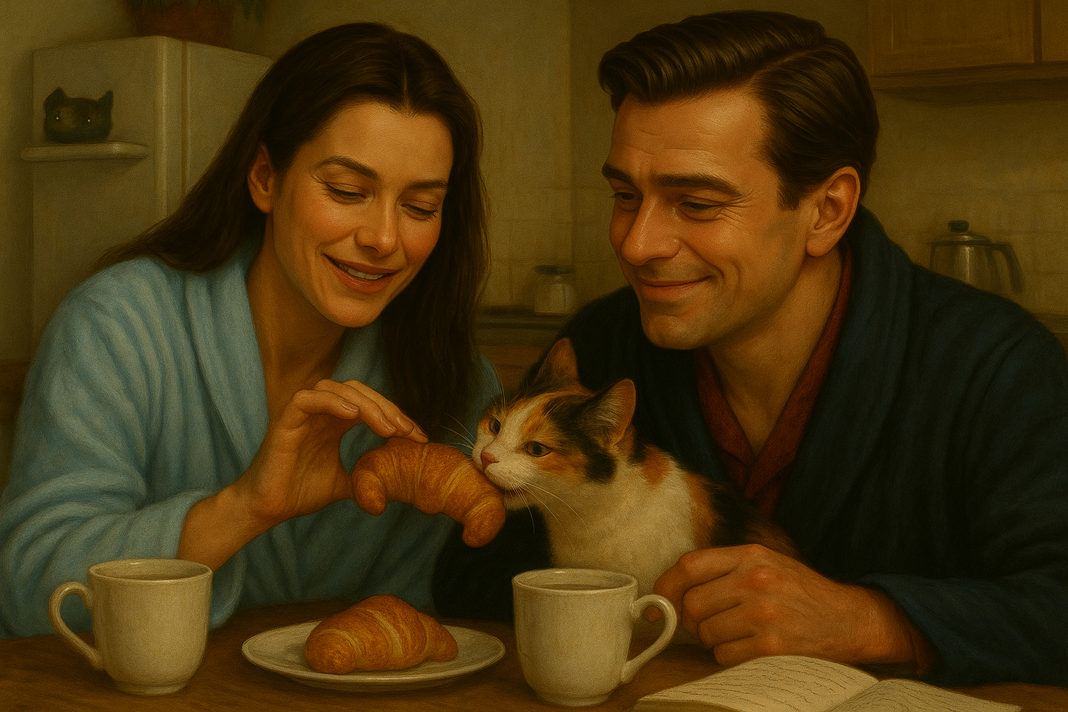 Не втаю, під час роботи над повістю була думка, щоб вони завели собі кішку, навіть придумав їй кличку — Діта. Але зрештою відкинув цю ідею, бо поїздки за кордон і те, що обидва більшу частину дня відсутні вдома — Сергій на засіданнях або консультаціях, Лоретта — в клініці, а тваринці треба, щоб хтось поряд був, то... вибір був очевидний)