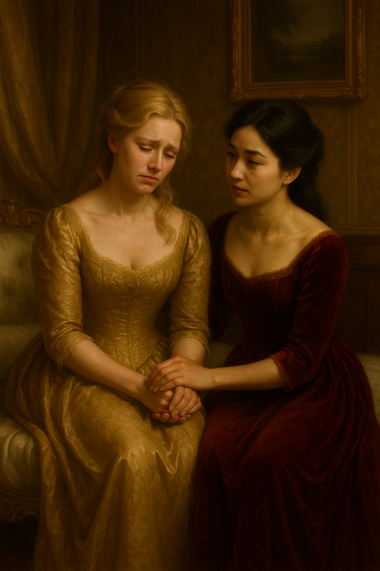 Мельсанта дивилася на співрозмовницю з невимовною мукою, а потім повільно заплющила очі і закричала. Цей крик був такий різкий, пронизливий і несамовитий, що Тевеані стало страшно, її очі розширились, а руками побіг мороз. Мельсанта ніби випускала у простір чорний потік свого невиплаканого болю, свого придушеного страждання, що так довго тримали її душу у заручниках. Тевеана, спонукана мимовільним бажанням, взяла зовицю за руки і закричала разом із нею. Якоїсь миті крик перейшов просто в ридання, яке незабаром теж стихло. І дівчата сиділи на ліжку, обійнявшись і схлипуючи.