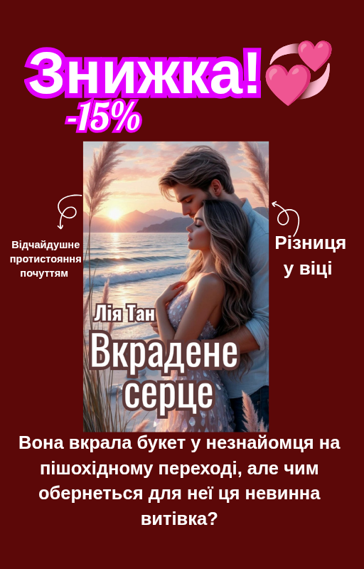 — Тобто вкрала? — у голосі Ані недовіра, а її сірі очі враз стають величезними. — Де ти вкрала цей букет? І чому я не чую завивання поліцейської сирени? Ти ж обманюєш… — бурчить подруга й сердито наказує: — Ану признавайся, хто подарував? Невже таки Арсен?