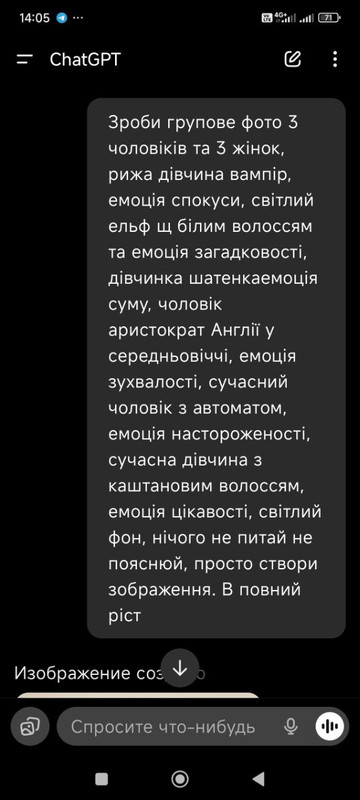 ✓ Я рекомендую для початку зробити запит на зображення з однією особою — так легше зрозуміти, як ШІ працює саме з вашим описом.
