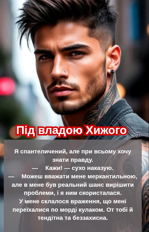 — Нелегко, Романе. Але коли ти в повній дупі, то, погодься, втратити той мізер, що залишився, уже не так боляче... — вона зиркає у бокове вікно і, витримавши паузу, додає: — Я погодилася бути з тобою, але це зовсім не означає, що я дозволю тобі себе зламати...