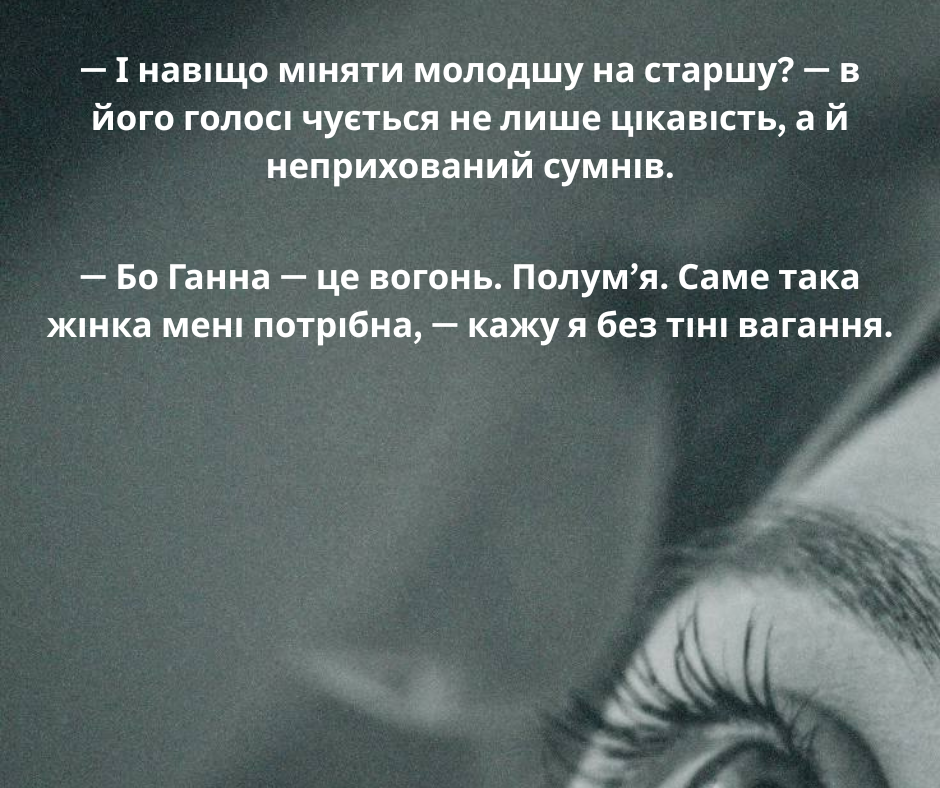 — Бо Ганна — це вогонь. Полум’я. Саме така жінка мені потрібна, — кажу я без тіні вагання.
