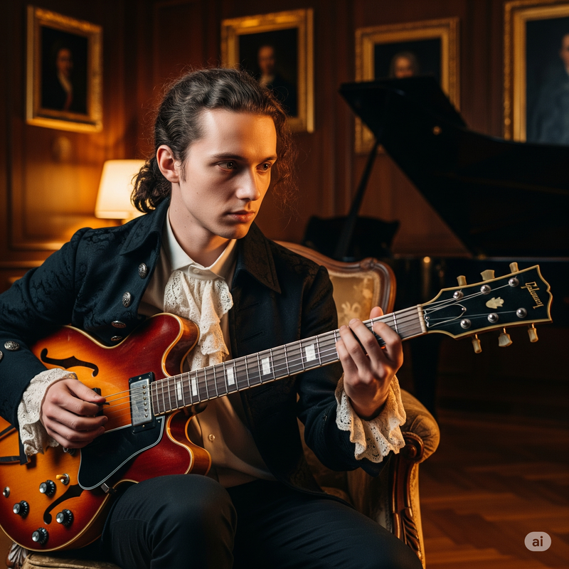 2. Мікаель - молодий музикант-геній років 20, гітарист, у якого музика сама народжується в голові. Усі знайомі відзначають, що він навіть зовнішньо схожий на Моцарта.