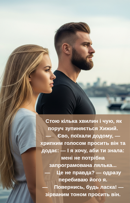 — Романе, з тобою неможливо домовитися, — невдоволено, але правдиво кидаю, коли він замовкає. — Ти тиснеш, переходиш на крик... Ти не вмієш домовлятися... А я жінка, я не твій черговий проєкт. У мене є емоції та бажання. Я не запрограмована лялька, яка тупо буде виконувати всі твої накази і ходити по стійці смирно...